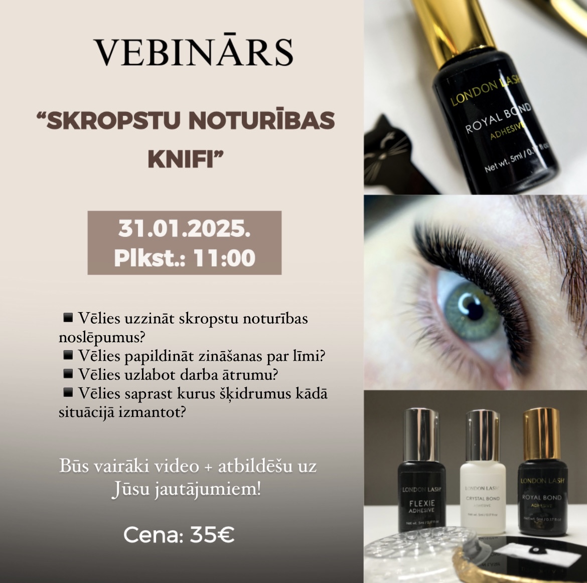 Būs vairāki video materiāli, lai maksimāli kvalitatīvi parādītu skropstu pieaudzēšanas procesu.